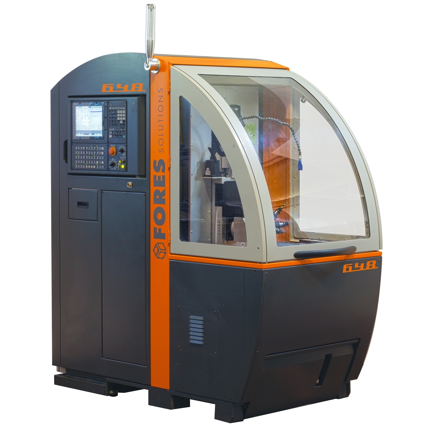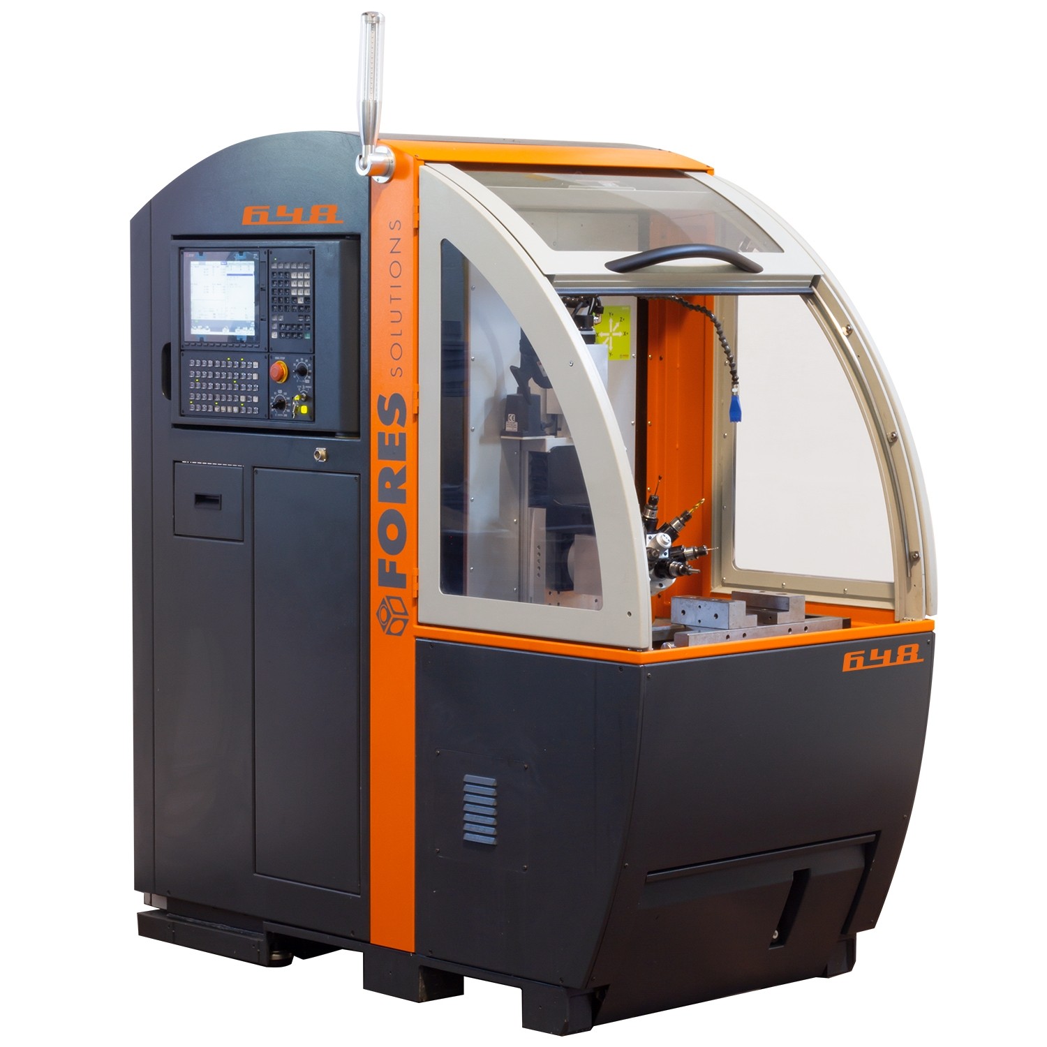 I piccoli, dettagli e i processi di finitura sono spesso un affare costoso su centri di lavoro grandi e di conseguenza costosi e bloccano eccessivamente questi impianti di produzione. Un centro di lavoro piccolo e altamente flessibile piazzato a richiesta aiuta a semplificare notevolmente il processo di produzione. Ma anche come macchina stand-alone rapidamente configurata, il centro di lavoro compatto mobile FORES 648 offre servizi preziosi e consente la lavorazione efficiente e precisa di pezzi più piccoli e medi con processi di foratura, fresatura e rettifica.